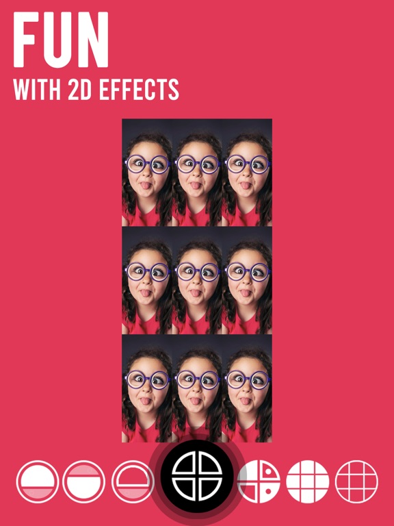 Choose photo from your camera roll or take a photo, and automatically turn it into a photo with mirror effects. Pick the effect you like best, then edit it to make it your own.