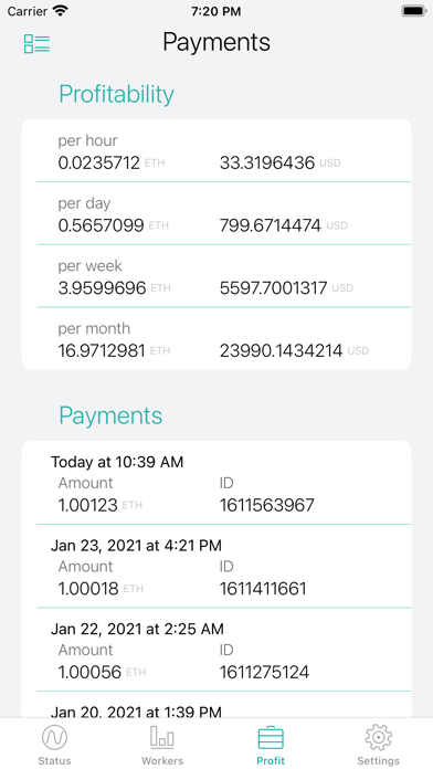 ethermine.org application for miner monitoring Provided features: - Real-time mining monitoring - Multiple monitoring addresses - Payment details - Projected income - Detailed statistics - Custom time interval - Multiple currency conversions - Rig hashrate and last share time