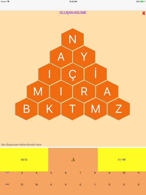 Kelime türetme konusunda ne kadar yeteneklisin? Peteklerle oluşturulmuş farklı boyutlardaki harf piramitleri seni bekliyor. Üstelik internet bağlantısı gerekmeden her yerde oynayabilirsin.