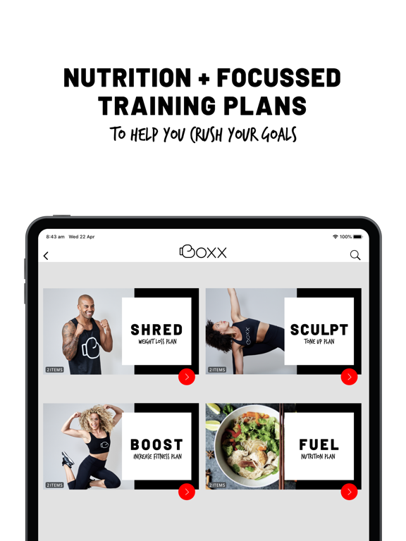 Boxx is the fitness solution that is simple, quick and effective.Access your workouts on any device, anytime, anywhere. Pick a class to suit you from: boxing, yoga and HIIT plus our super popular nutrition and workout plans to help you reach your goals.