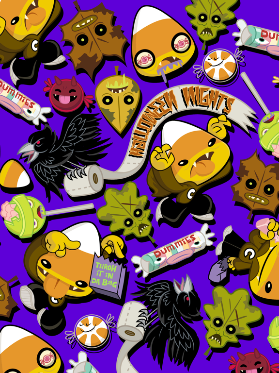 When dead leaves, RISE! Run and tell your mummy! Terrify your friends with zombie leaves, candy corn vampires, smarties become dummies, sucker your brains! and more in this terrifying sticker set just in time for Halloween!