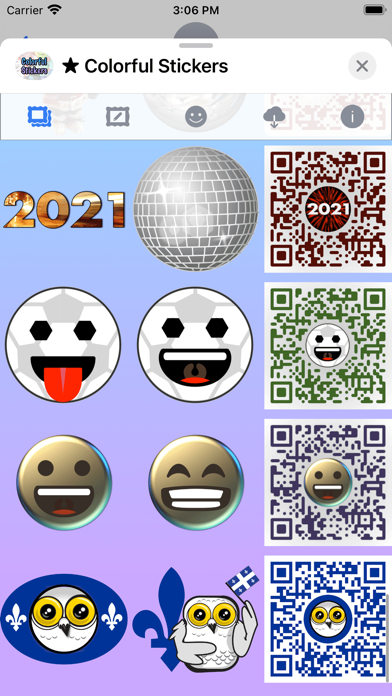 A lot of different themes of stickers : Emoji, Animals, Love, Birthday, Christmas, Halloween, Easter, New Year, Quebec...