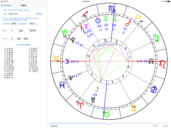 The beloved desktop app is finally on iOS! AstroClock is a "live" Astrological chart wheel which is updated every minute. You'll see the Ascendant and other cusps change minute-by-minute, and the current position of the planets gradually moving.