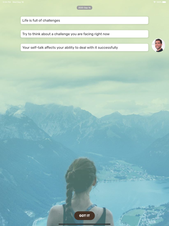 The app's many topics and themes are broken down into more than 500 levels. Each level has a pool of self talk statements (or thoughts).