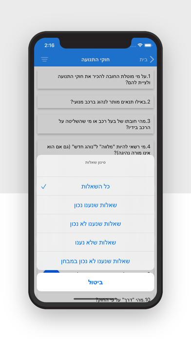 - האפליקציה תומכת בכל דרגות רישיון הנהיגה בישראל :