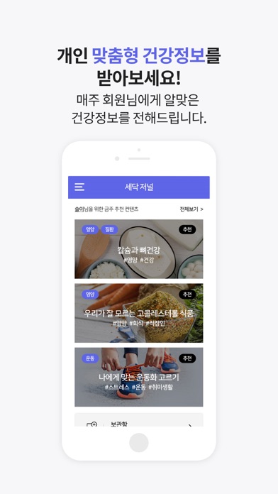 • 세닥저널: 나에게 필요한 질환과 건강관리에 대한 유익한 정보와 가이드를 모두 담았습니다.