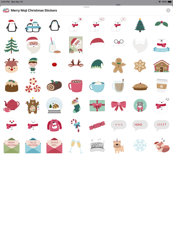 3. Scroll to the right until you see the "Merry Moji Christmas Stickers" penguin icon. Tap and start sending stickers!