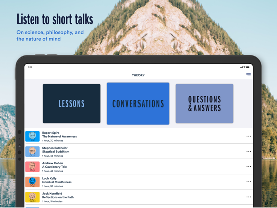 - Lessons: Listen to short talks on science, philosophy, and the nature of mind.