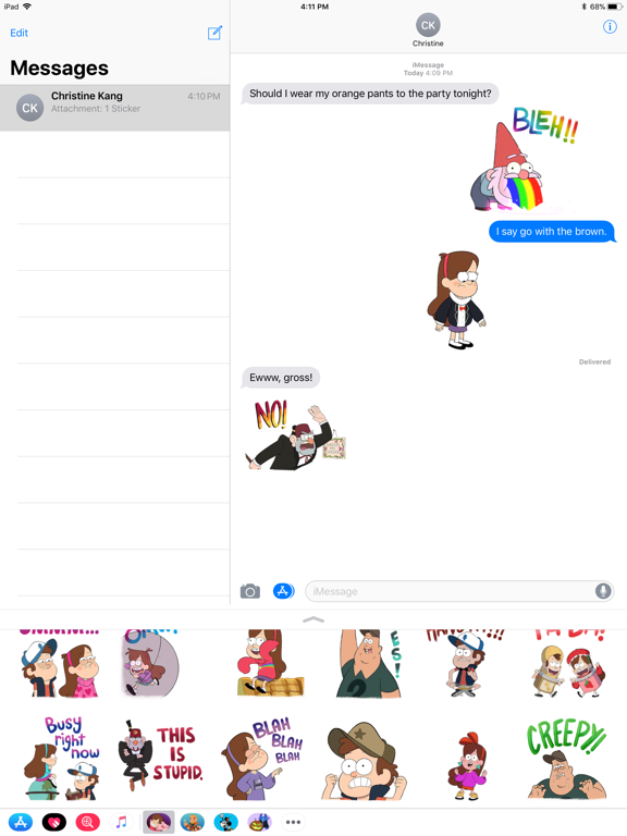 What’s west of weird? A NEW pack full of 24 animated Gravity Falls stickers! Send messages with stickers featuring Mabel, Dipper, Soos, Grunkle Stan, Waddles and MORE!