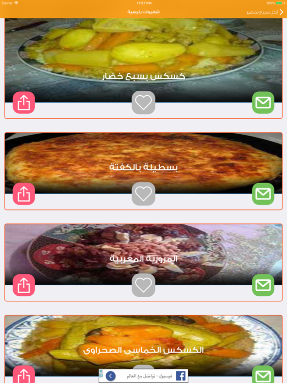 في تطبيق أكل سريع تحضير ستجدين ما يلي :