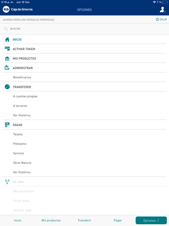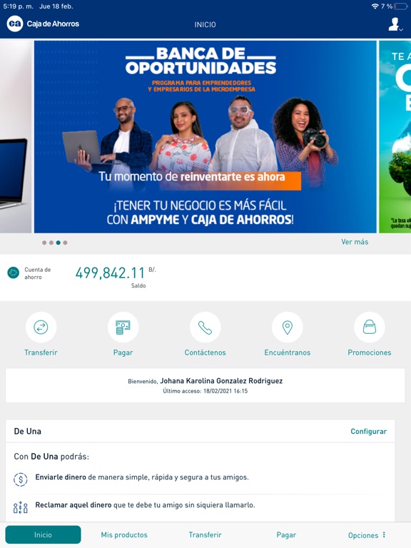Transferir entre tus cuentas propias o a terceros en Caja de Ahorros y otros bancos locales.