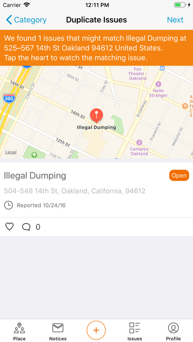 OAK 311 makes connecting with the City of Oakland, California easier than ever. You can quickly report non-emergency issues (such as potholes, graffiti, or damaged sidewalks), and even attach a photo of the issue. You can also comment on and follow issues that have been reported by others in Oakland. The exact location of the issue can either be pulled automatically using GPS or adjusted manually. Once submitted, the report will be directly routed to the appropriate department within the City of Oakland and you will be notified when action is taken. Community members can follow and comment on your submission. In addition, the app can be used to connect to the City of Oakland on social media, find out the latest news, check out upcoming events, and more! OAK 311 makes it easier than ever to reach out to the City!