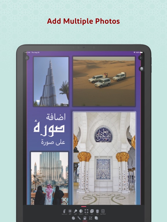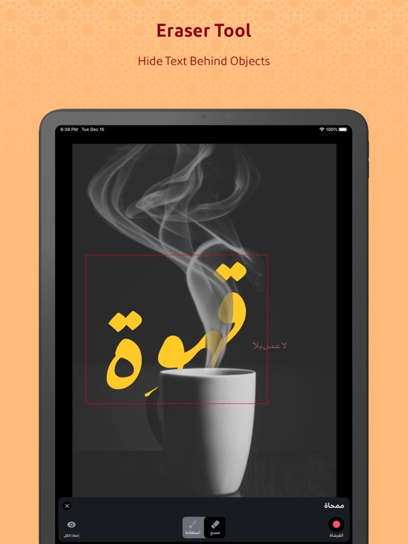 • امكانية الكتابة على لوحة ذات خلفية ملونة او صور جاهزة او اي صورة من مكتبة الصور.