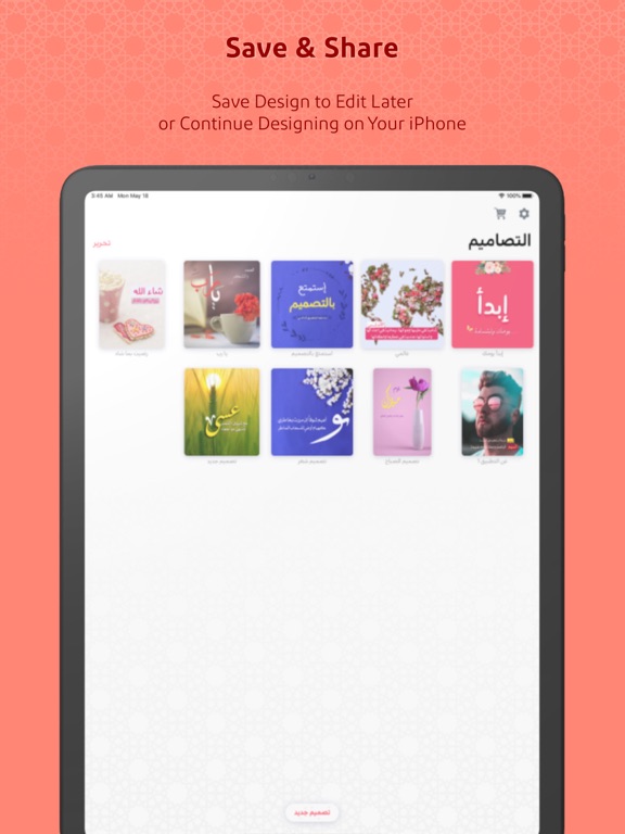 • امكانية حفظ التصاميــم والتعديــل عليهـا في وقــت لاحق.