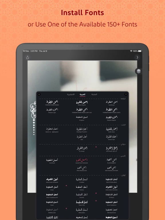 يمكنك تثبيت خطوط بصيغة ttf أو otf من أي مصدر خارجي واستخدامها في تصاميمك.