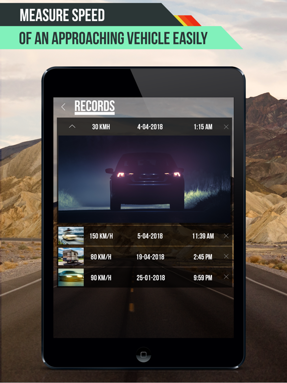 Turn your device into a Radar Speed Gun! Measure speed of an approaching vehicle easily! Is car moving too fast? Now you have the tool to find out! All you need to do is: 1. Point your device’s camera toward the approaching vehicle 2. Aim between the headlights & wait for measurement to begin 3. Save the result at any moment by pressing the “Save” button Have fun!