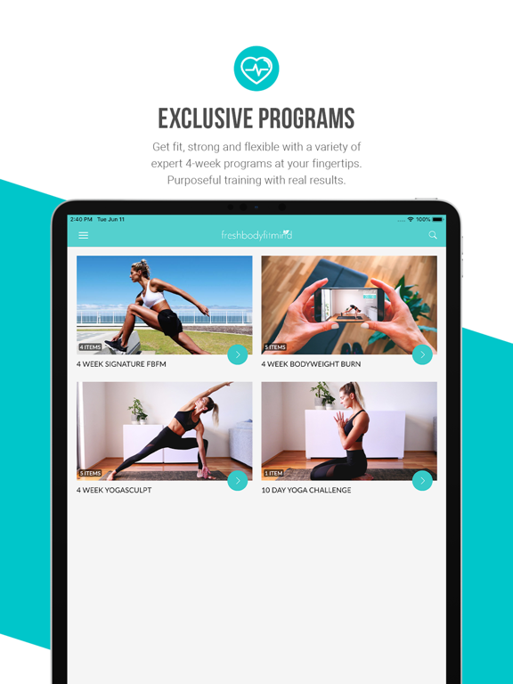 Unlimited access to the growing library of Fresh Body Fit Mind workouts, yoga, programs & challenges. Do as many classes as you like, at anytime.