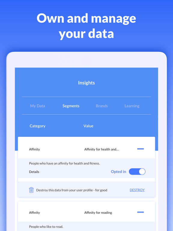 BIGtoken also gives you complete ownership over your data. We believe data privacy is a human right, which is why you can easily opt in and out of sharing specific information with advertisers so you’re always in control. After all, it’s your data and it’s your money.