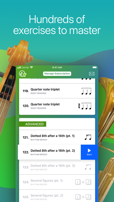 Whether you practice alone or with a teacher, Rhythm Trainer will help you to: