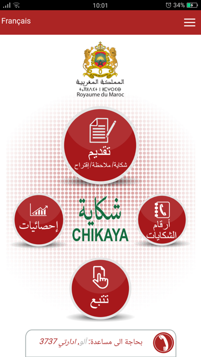 « Chikaya » est une application bilingue (Arabe/Français), permettant de faciliter la soumission et le suivi des réclamations(plaintes), des observations et des suggestions à tout moment, en tout lieu et en toute sécurité.