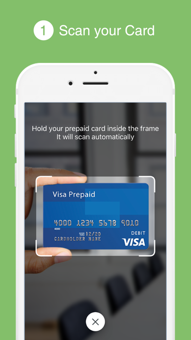1) Scan your card – using your phone’s camera or enter your prepaid card information manually.