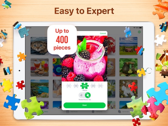 · Up to 400 puzzle pieces. The more pieces, the harder your game becomes