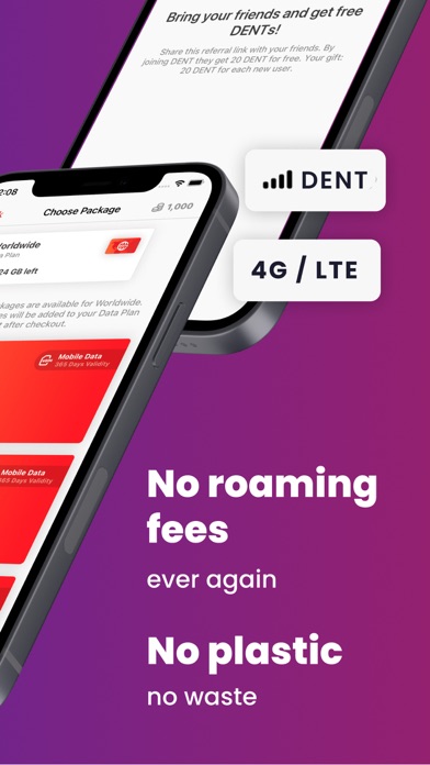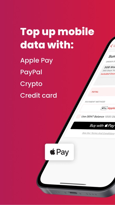 Buy DENTs safely directly in the app and exchange them for data or airtime packages. We support various payment methods, like Apple Pay, PayPal, credit card and crypto payment.