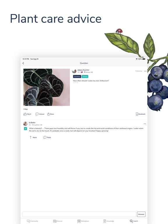 – Ask or answer questions. Learn how to care for your plants or impart your wisdom