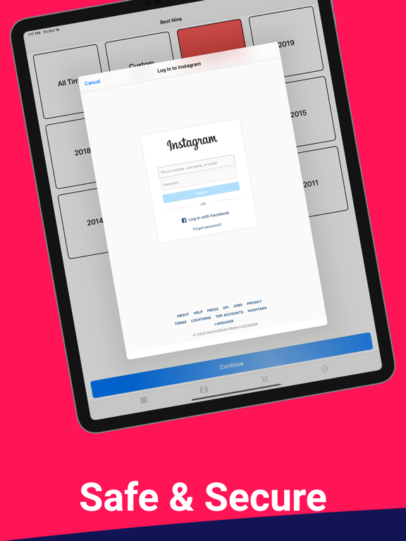 Guess what! You can even rearrange the pictures in the grid to really show off your year exactly how you want it! Don't like square pictures? Share your glamorous cropped pictures with one of two scaling options! Do you manage multiple accounts? You'll be happy to know that you can easily log out and generate your Best Nine for other accounts too!