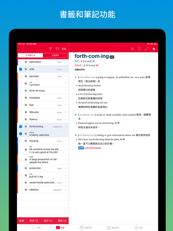 ▪ Add bookmarks and notes, set Learning Status, export your own word lists and notes