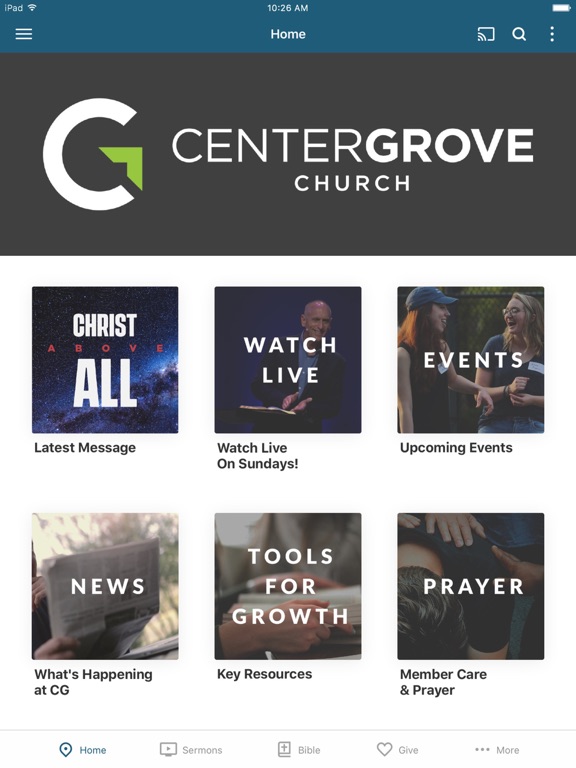 Center Grove Church exists to make disciples and change the world. Download the app to watch sermons live on the weekends or on-demand, view information about upcoming events and access other tools and resources to equip you throughout your week. For more information about Center Grove Church, visit www.centergrovelife.org.