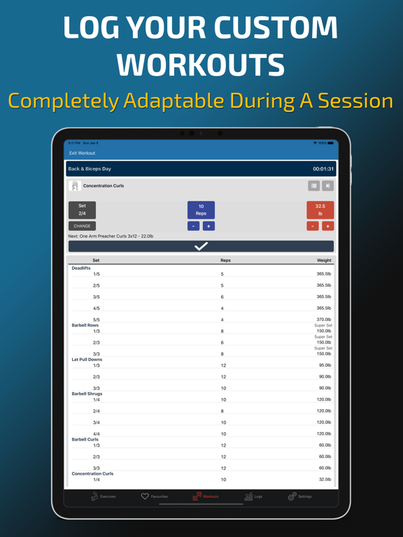 Create and customize your own workouts or browse over 120 predefined workouts to help improve fitness, add strength, get ripped or tone up!