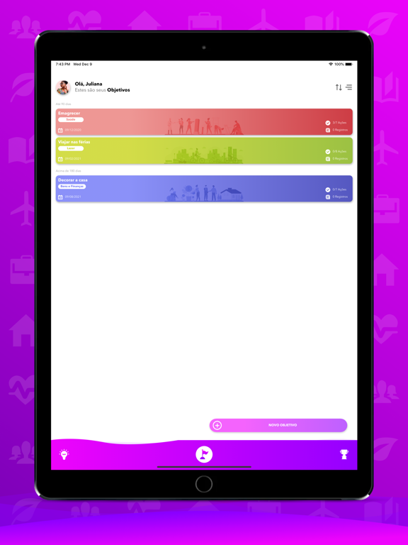 Já pensou em poder organizar suas metas e objetivos todos no mesmo lugar e ainda contar com recursos e dicas incríveis para te auxiliar a conquistá-los? Baixe o app 7waves e comece a planejar suas próximas conquistas.