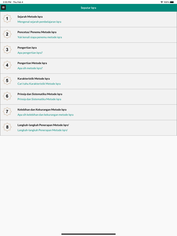 Belajar mengaji quran sejak dini itu sangat penting. Salah satu kenangan akan selau teringat adalah belajar quran melalui paket buku IQRA jilid 1 sampai dengan jilid 6. Nah, berangkat dari hal itu kami membuat aplikasi Buku IQRA lengkap mulai dari jilid 1 sampai dengan jilid 6. Semua jilid kamu kemas dalam 1 aplikasi menarik yang memiliki beberapa fitur sebagai berikut: