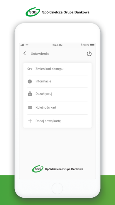 - możliwość dodania w aplikacji każdej karty płatniczej wydanej w Banku należącym do Spółdzielczej Grupy Bankowej możliwość sprawdzenia środków dostępnych dla karty