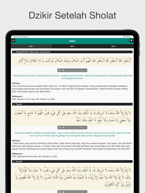 Aplikasi ini berisikan kumpulan doa dan dzikir lengkap terutama untuk doa dan dzikir setelah sholat fardhu. Aplikasi dilengkapi teks arab, teks Bahasa indonesia, dan juga audio yang bisa diputar.