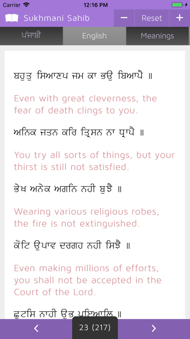 This app has the Sukhmani Sahib text in full in both Punjabi and English. In addition, it has detailed meanings for each line.