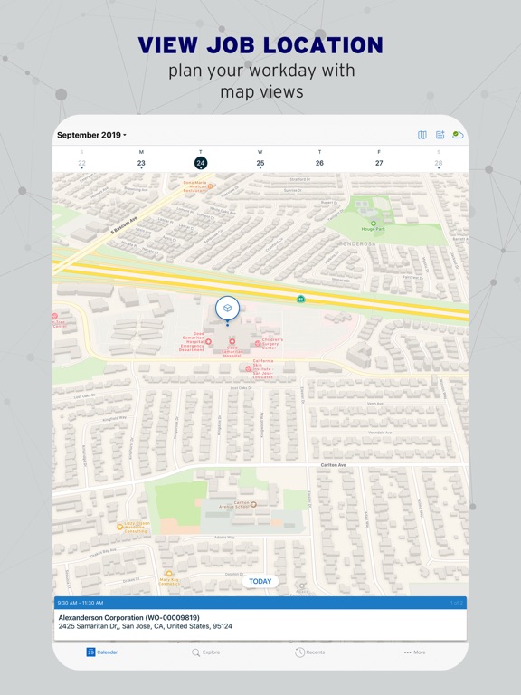 • Multiple calendar views to preview daily and weekly tasks, driving directions and travel times, appointment details, and instantly respond to new work orders