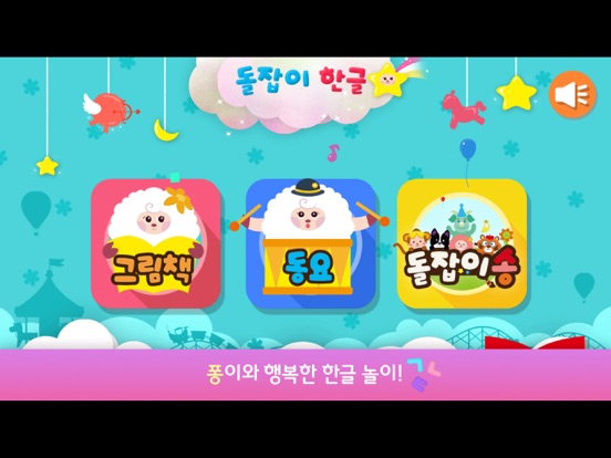 돌잡이한글은 아이에게 친숙한 생활 주제를 바탕으로 반복적이고 리듬감 있는 말놀이를 통해 어휘력과 상상력을 키우는 언어놀이 프로그램으로, 이 애플리케이션은 돌잡이 한글의 학습을 돕고자 제공됩니다.