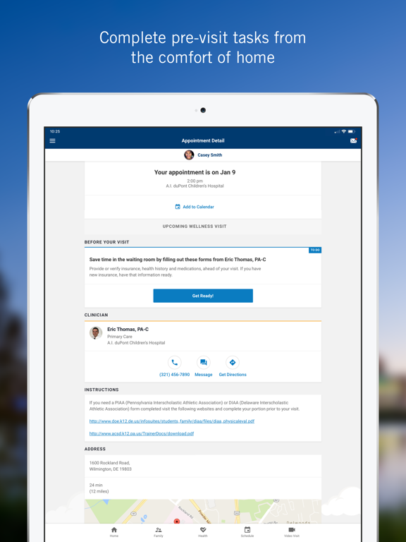 • Complete pre-visit tasks from the comfort of home