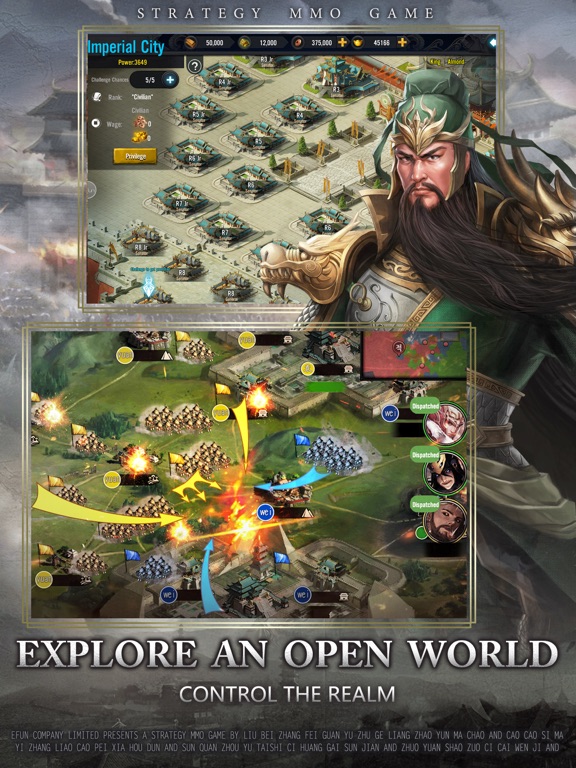 Three Kingdoms: Massive War is an epic war-themed Multiplayer Online Real-time Strategy Game that lets you act as a lord in the Three Kingdoms period, join the states of Wei (魏), Shu (蜀) or Wu (吴) and battle against friends and enemies from the other states. You will be free to conquer kingdoms and explore in the fantasy world map, which is largely faithful to the history. Build your empire, command powerful heroes & armies, forge an alliance, put your tactical mind to test against opponents across the globe and become legendary!