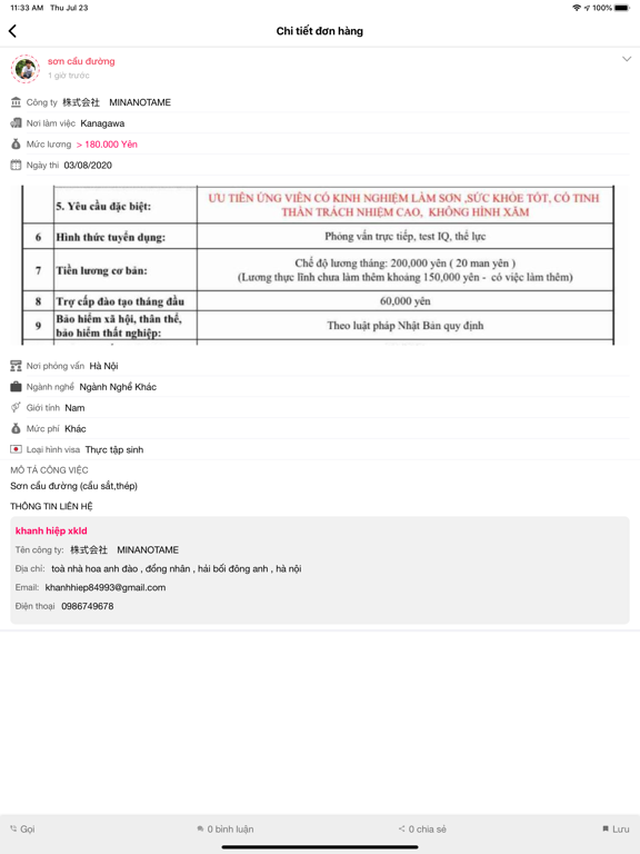 - Liên hệ trực tiếp với cán bộ tuyển dụng thông qua việc gọi điện, nhắn tin, bình luận ngay tại đơn hàng, việc làm