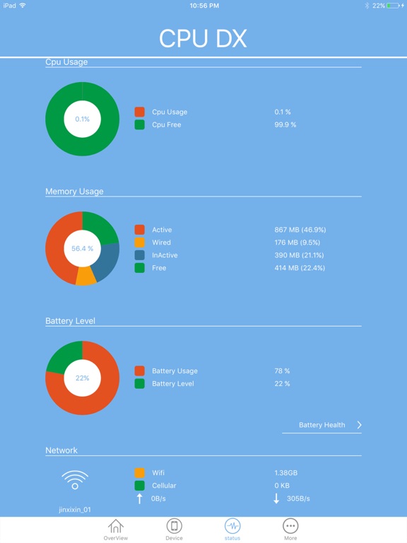 CPU Dasher is a smart app which can find the key informations of your device.There are three main features: