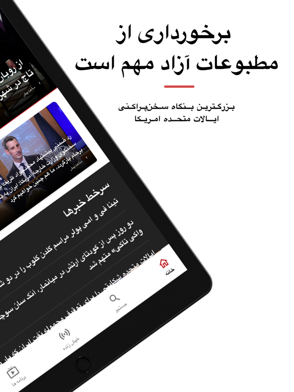 اپلیکیشن رایگان و رسمی صدای آمریکا VOA برای دریافت خبر و گزارش بر روی تلفنهمراه و تبلت طراحی شده است. صدای آمریکا یکی بزرگترین شبکههای رسانهای در جهان است که از طریق دیجیتال، تلویزیون و رادیو مشغول خبر رسانی است. بیش از ۲۰۰ میلیون نفر در هفته در جهان از جمله خاورمیانه، آسیا و آفریقا از خدمات صدای آمریکا استفاده میکنند. برای این خدمات، ۳۵۰۰ روزنامهنگار بر روی کشورهایی که دسترسی آزاد به رسانه و اینترنت وجود ندارد، متمرکز هستند.