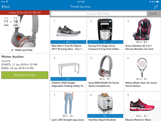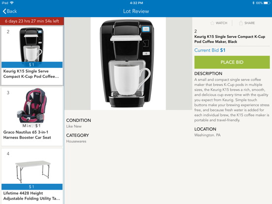 Participate in our auctions while on the go or at your leisure from your mobile device and gain access to the following features: