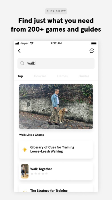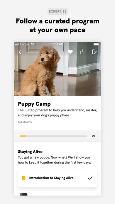 Harper is the perfect dog training app for people with a new puppy, or beginners with their first dog. It has a library of over 30 guided training programs to follow, more than 200 training exercises with step-by-step video instruction, and live trainer chat any time you have a question.