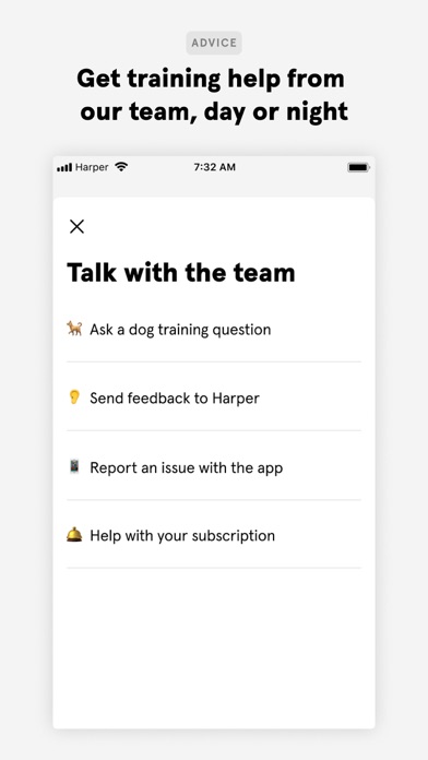 Harper is designed in collaboration with certified dog trainers and PhD animal behaviorists. It uses positive reinforcement—the most ethical, effective, and well researched approach to dog training today.