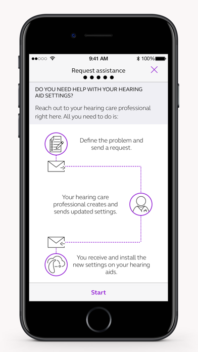 • Enjoy optimization anywhere with Audigy Assist: Request help with your hearing aid settings from your hearing care professional and receive new settings and software updates.