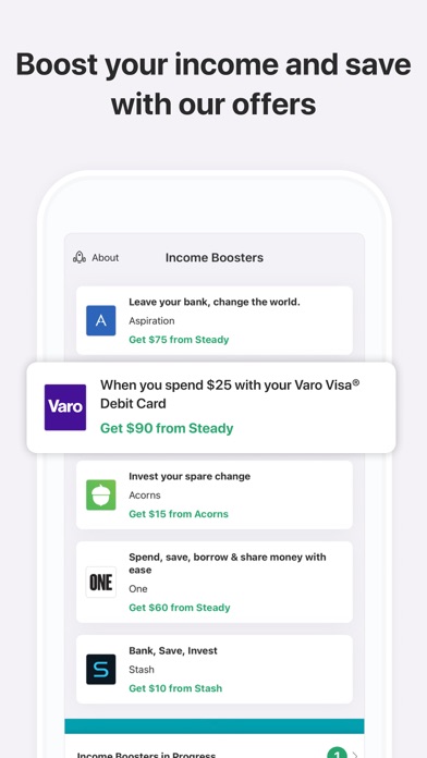 If you enjoy these FREE features, you may wish to consider our Steady+ Membership featuring extra bonuses and tools. You can earn up to 2x more cash on Income Boosters, view detailed personal income trends and gain insights like how much employers are paying in your area. Plus, you can export your financial data to get a better handle on your earnings.