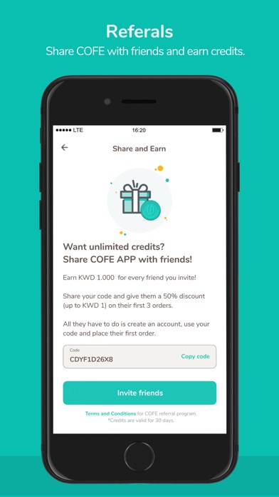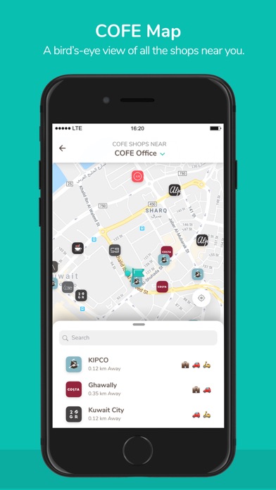 Created by a team of caffeine fueled techies from around the world, COFE currently serves COFE lovers across Kuwait. The app uses your location to show you closest COFE vendors, offers in-app credit options, and exciting multi-brand promotions.